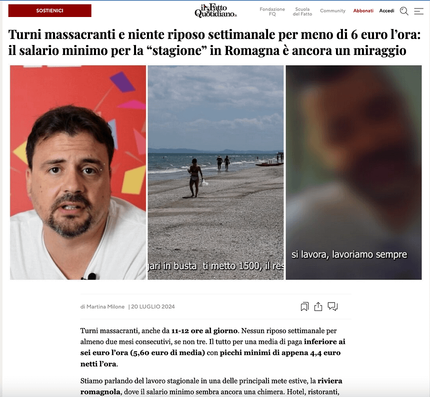 Torniamo ai lavoratori stagionali, si lamentavano che per colpa del reddito di cittadinanza non si trovava personale addetto agli stabilimenti balneari, erano solo cazzate, tutto questo con la connivenza nel falsare le notizie dei giornali che ci hanno fatto un lavaggio della testa, non era così !!!! Non si trovava personale perchè i ragazzi venivano sottopagati ed è per questo che non si trovavano persone…!!!!!